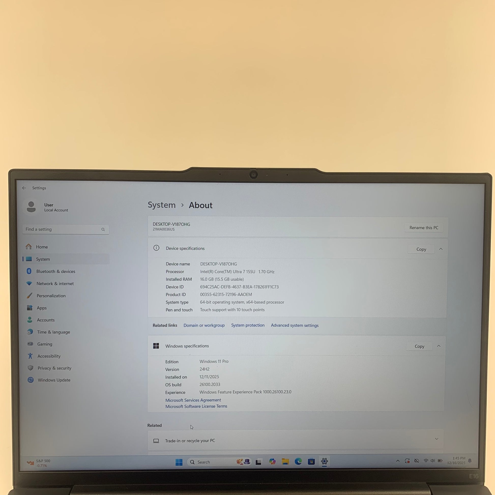 | Processor | Core Ultra 7 155U